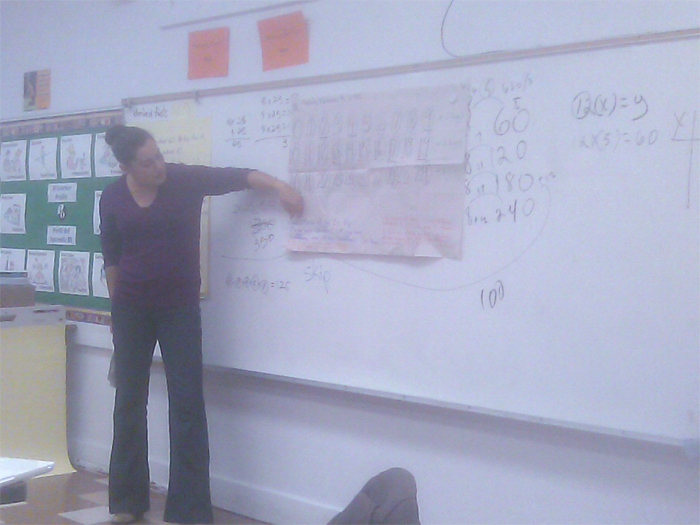 Christina leads an CGI Math activity about seeing patterns in numbers.