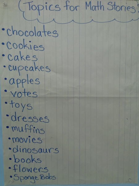 Make a list with students on possible math story topics.
