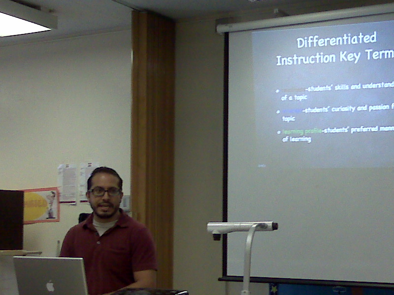 Joseph presenting at Nevin's professional development --introduction to Differentiated Instruction.