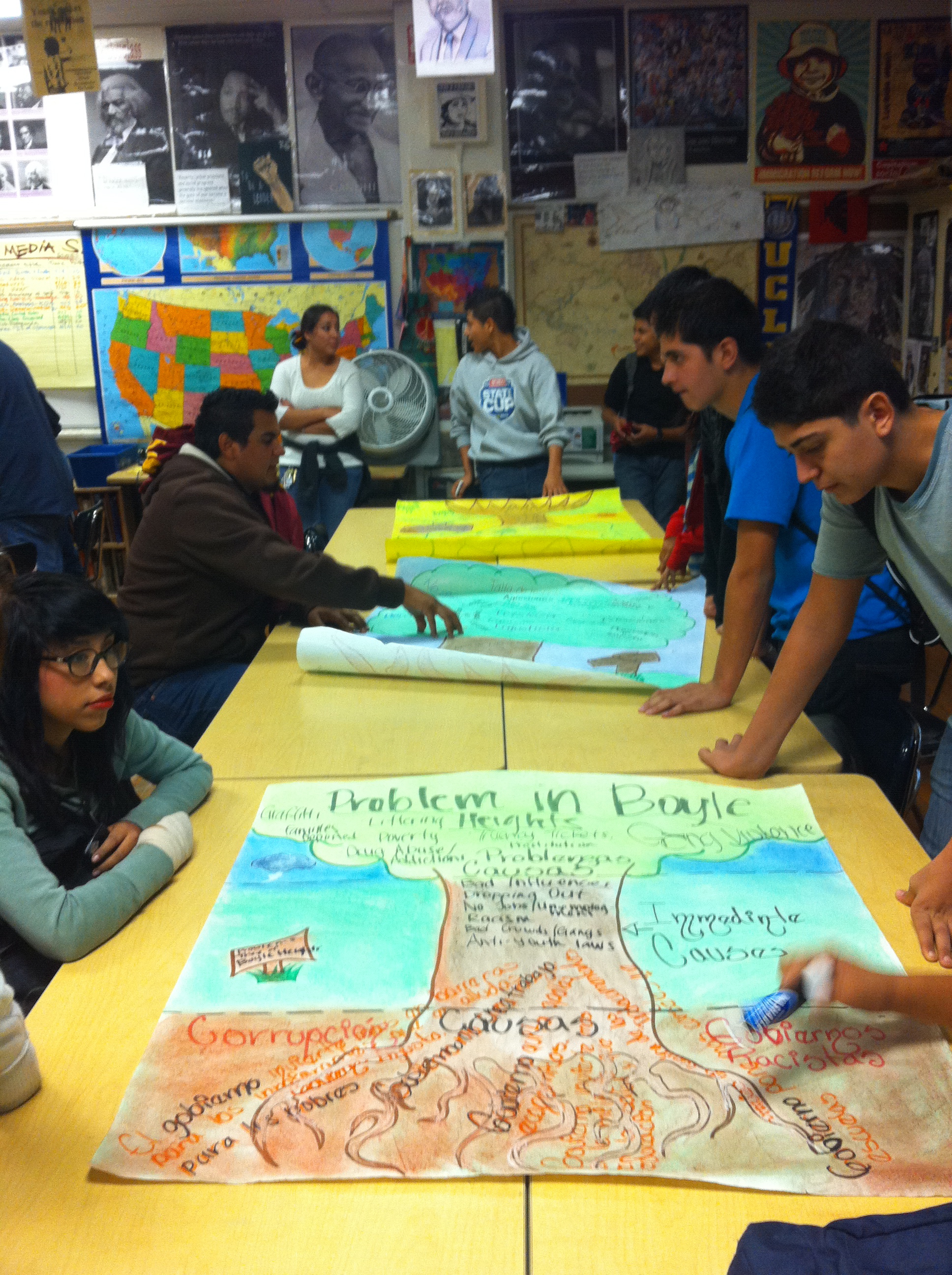 An activity that has been used by organizers in Brazilian favelas. Students learned to identify community problems, find immediate causes and think deeply into root causes of problems within government and economic systems.