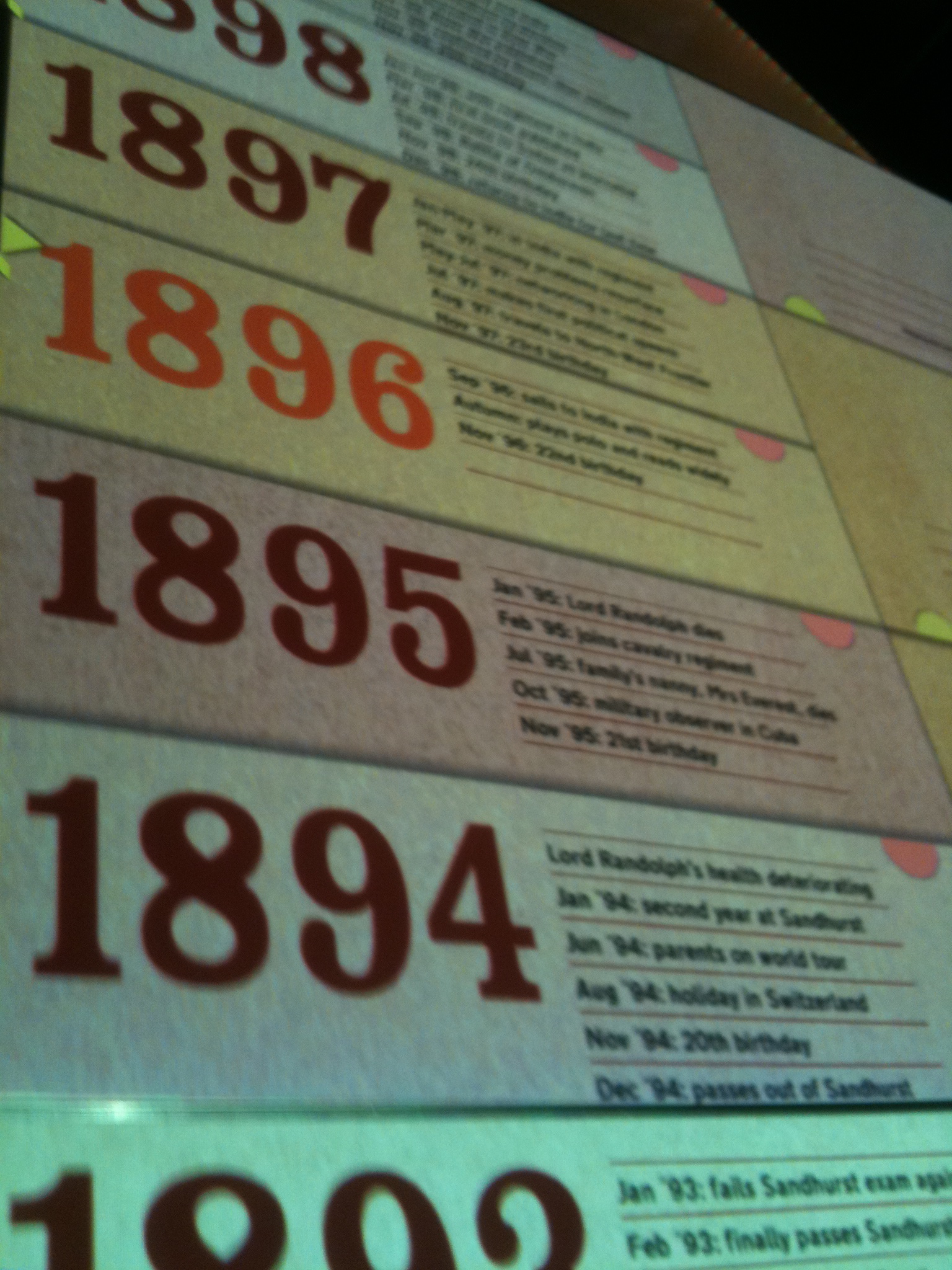 Still photo of timeline, unexpanded, from digital light board at the Churchill Museum in London