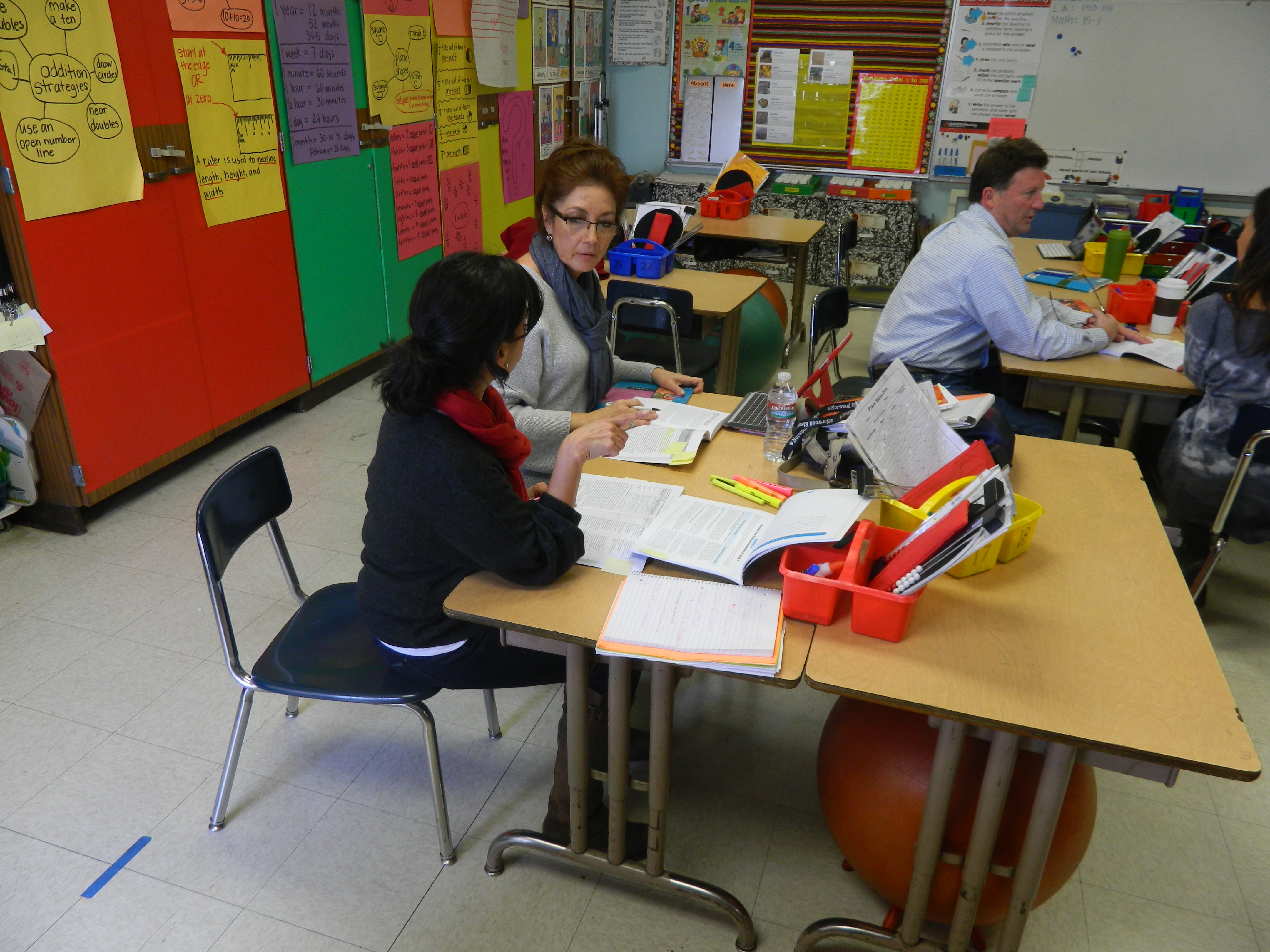 Original team member, Sandy, discusses Context for Learning investigation with new team member Maria.